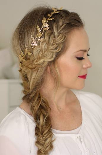 - Украсьте волосы декоративными заколками — и шикарное плетение готово! По желанию можно оставить косу свободной.