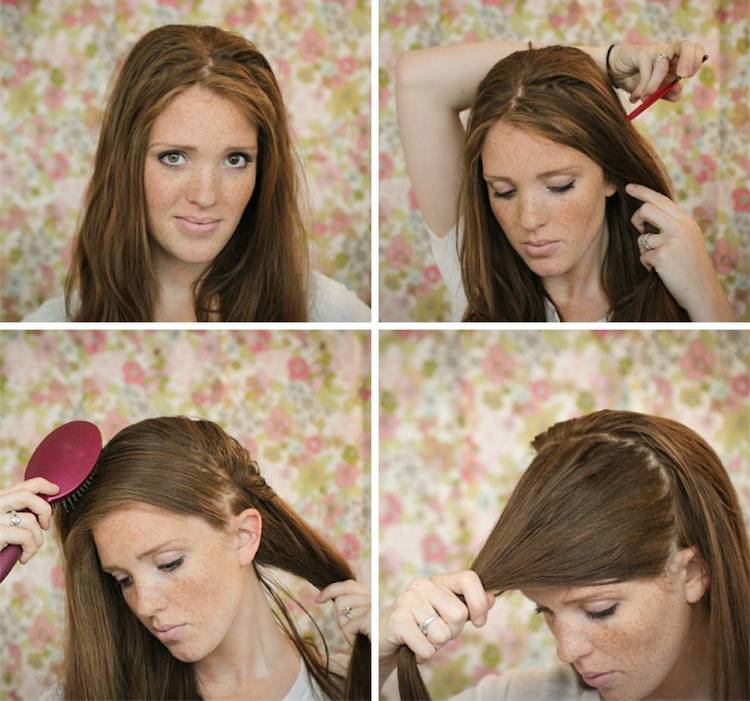 - 1. Расчешите волосы и разделите их на две равные части.
