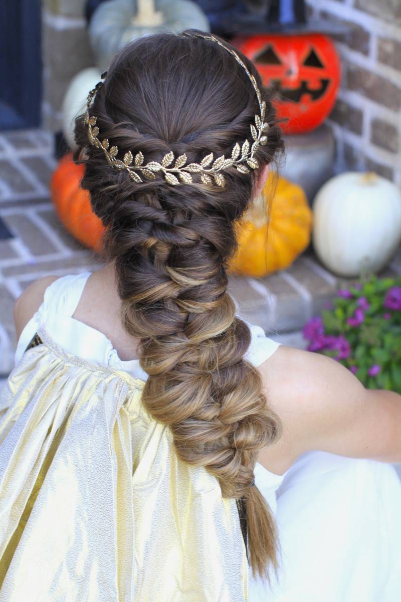 У тебя нет длинных волос? Не волнуйтесь, еще можно сделать косичку — водопад. Имейте в виду, что вы начнете плести косу намного выше, чем если бы у вас были волосы, как у Рапунцель. Рекомендуем начинать плетение прямо с края головы, у линии роста волос.
