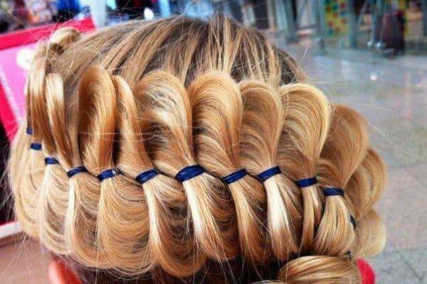 Продолжайте эту технику — опускайте нижние пряди и заменяя их новыми волосами, пока не дойдете до другой стороны головы. Напоследок сплетите обычную тесьму, свяжите ее прозрачной резинкой и закрепите под водопадом. И у вас это получилось!