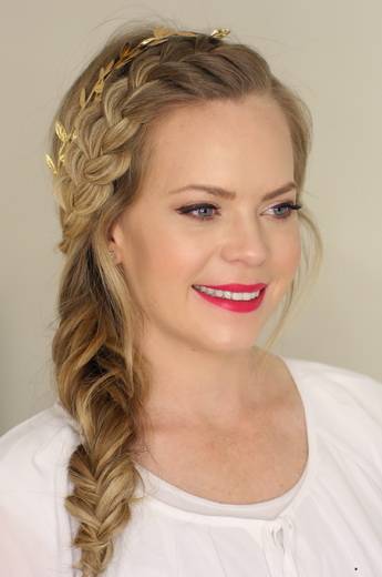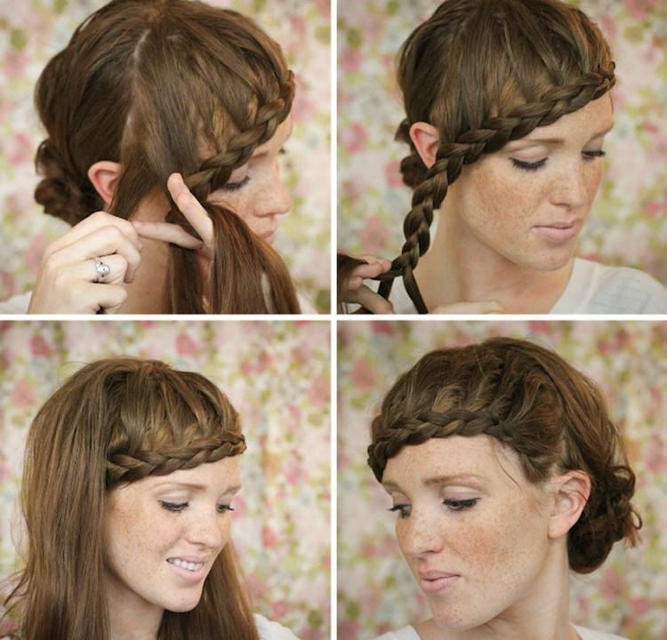 - Греческая корона. Его плетут от виска к уху, далее вниз к шее, ко второму уху, полукругом над лбом. Начинают работать с трех прядей, в каждую прядь втыкают остальные волосы. Круговой круг выглядит выразительнее, если его создать наоборот.