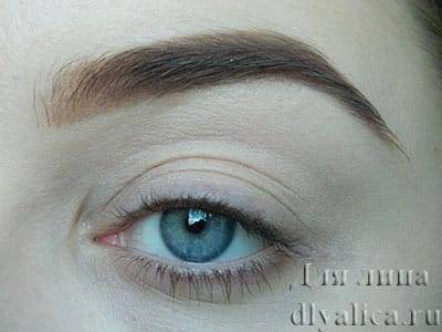 Сначала немного покрываем верхнее веко во внешнем уголке, а затем уводим тень выше вашей натуральной складки.