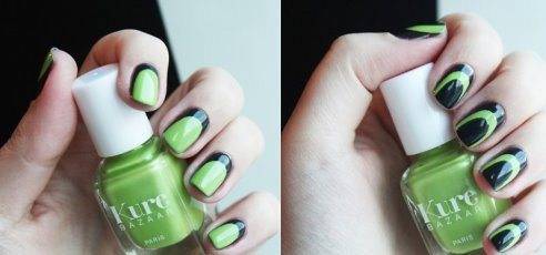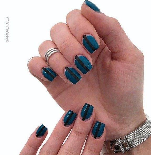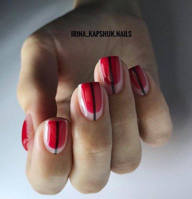 И двойной. То есть, когда одна полоска, чередуется за другой. При этом чаще всего, для выполнения такого маникюра, используется более контрастные оттенки цветов.