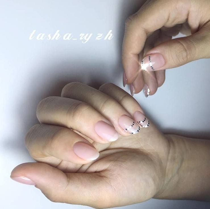 А для тех, кто собирается на праздник или вечеринку, можно присмотреться к гламурному шику: матовости со стразами или бусинами, оформлению с помощью цветной фольги и т. д. Вариантов не счесть, поэтому предлагаем вам просто посмотреть самые стильные и новые варианты обратного френча, которые мы собрали специально для вас!