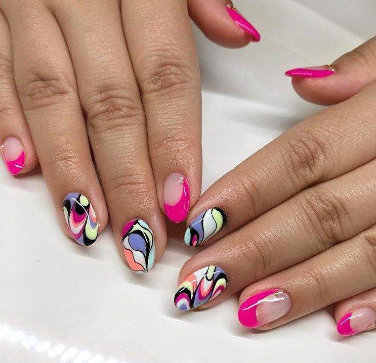 Для создания сочного маникюра используйте яркие оттенки, которые будут дополнять друг друга. Не бойтесь экспериментировать.