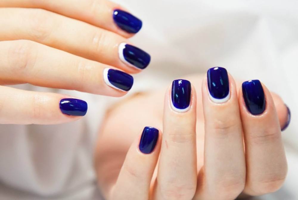 Перед созданием любого дизайна нужно сделать маникюр, после чего обезжирить ногти. Нанести базу для гель-лака. Высушить в УФ-лампе. Покрыть ногти тем цветом гель-лака, который будет просвечиваться возле кутикулы. Гармоничнее всего смотрятся золотистый, серебристый, светло-розовый, белый. Высушить под лампой. Нанести второй слой и также высушить. Немного отступив от кутикулы и боковых валиков, прокрасить следующий слой – ярко-синим, черным, красным или другим контрастным оттенком