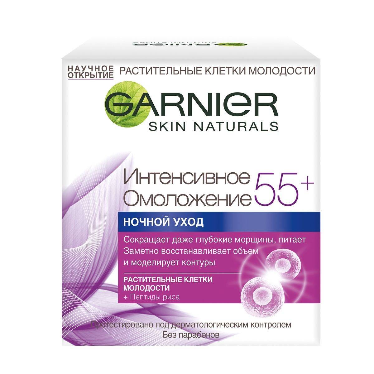 Хит продаж – крем от Гарньер Интенсивное омоложение. Крем для женщин 55+ предлагает комплексный ночной уход. Средство протестировано под дерматологическим контролем. В составе отсутствуют парабены. Отличительная особенность – лучшая формула: растительные клетки молодости, пептиды риса, полезные масла и экстракты. В результате сокращение даже глубоких морщин, питание, заметное восстановление объема и моделирование контуров лица.