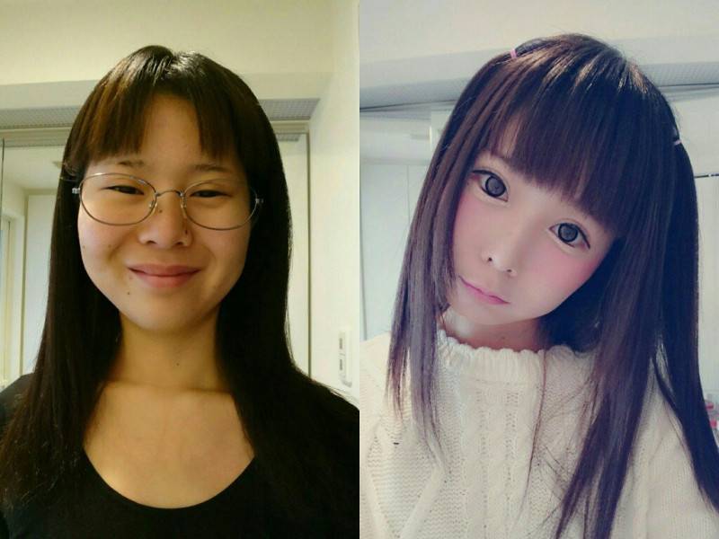 Вот такие бывают чудеса японского макияжа: на фото изменение до неузнаваемости.