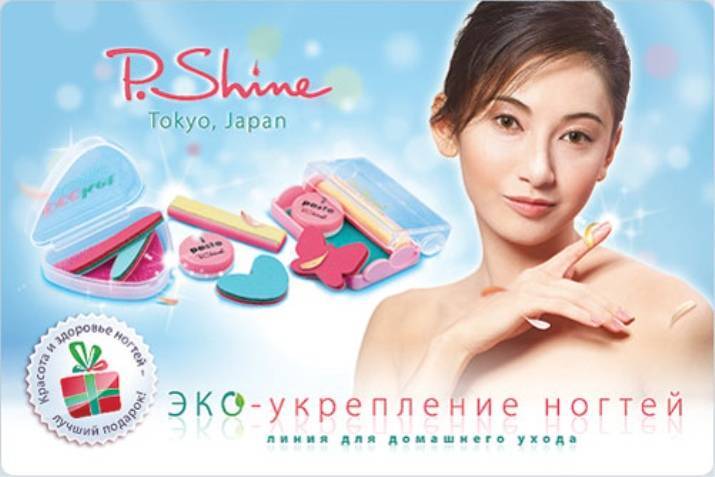То же можно сказать о косметическом наборе и средствах для эко-маникюра P. Shine. В профессиональном наборе P. Shine есть не только коробочки с минеральной пастой и полировочная пудра. Там будет 2 бафа из натуральной замши для деликатной обработки ногтевой пластины (отдельно для пасты и пудры), а также подушечки для шлифования, замшевая салфетка для снятия остатков средств перед очередным этапом процедуры, «интеллектуальная» пилка (которая может использоваться для нанесения пасты и пудры на поверхность ногтя). Всё упаковано в симпатичный пластмассовый футляр.