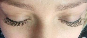 - Объемная техника. Такое наращивание позволяет придать ресницам роскошный объем. Техника предполагает приклеивание к каждому натуральному волоску сразу по несколько искусственных ворсинок. Эффект натуральности можно сохранить лишь при использовании самых тонких ресничек до 0,7 мм в диаметре.