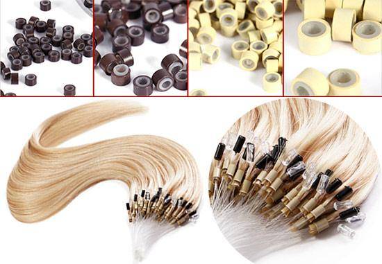 Процесс наращивания волос заключен в том, чтобы скрепить настоящие пряди волос и накладные. Это делается с помощью небольших колечек, клипс или бусинок, диаметр которых составляет 2-3 мм.