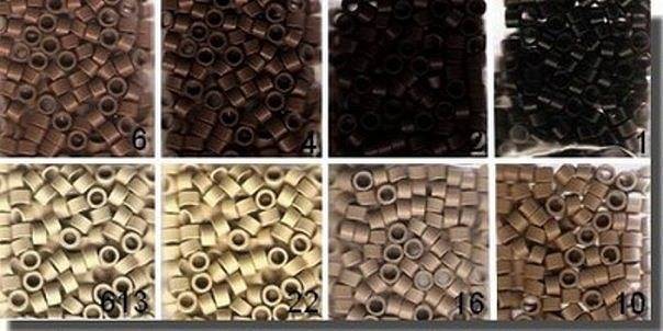 Заключается она в том, что накладные и родные пряди соединяются при помощи маленьких колечек, бусинок или клипс (диаметром 2-3 мм). Специальным крючком на расстоянии 0,5 см от корней мастер продевает наращиваемую и естественную пряди в кольцо и зажимает его щипцами. Благодаря такому нехитрому приему крепления – на редкость надежные, а волосы не подвергаются нагреванию, поэтому не повреждаются. Клипсы можно подобрать так, чтобы они полностью сливались по цвету с природным оттенком волос: широкая цветовая гамма, в которой они представлены, позволяет это сделать. А небольшие размеры колечек делают их совершенно незаметными на волосах, прическа выглядит очень естественно. Как правило, мастер наращивает 150-200 донорских прядей, длится процедура в среднем 3,5 часа, а результат сохраняется 3-4 месяца.