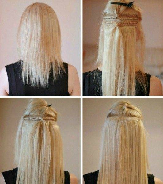 - Огромным преимуществом является то, что таким способом позволяет нарастить пучки волос на даже очень короткие свои собственные волосы. Для наращивания достаточно 3-4 сантиметров «родных» волос.