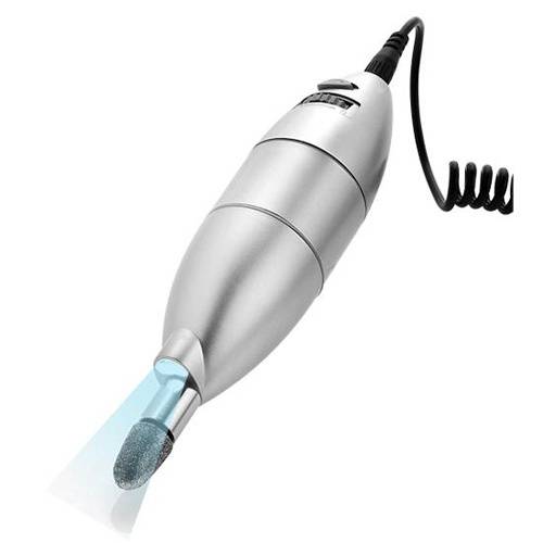 Регулировать направление и скорость вращения можно с помощью плавного бесступенчатого переключателя на док-станции. В комплекте с устройством также идет ножная педаль, с помощью которой можно управлять включением и выключением инструмента. Аппарат работает очень тихо и не создает излишней вибрации, позволяя снизить нагрузку на руку.