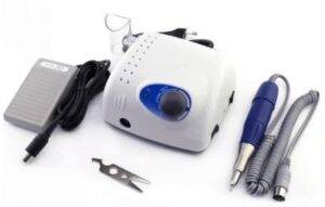 Рейтинг фрезеров для профессионального педикюра и маникюра открывает аппарат Nail Dril ZS 601. Аппарат имеет фактическую мощность 45 Вт, поэтому он идеально подойдет как для маникюра, обеспечивая профессиональную обработку кутикулы, боковых валиков, подушечек пальцев, так и для педикюра в процессе обработки натоптышей и ороговевшей кожи. Аппарат работает на разных оборотах от минимального 0 до максимального в 35000 об/мин. Плавный переход скоростей производится ручкой на передней панели аппарата или с помощью ножной педали. Фрезер прекрасно подойдет для аппаратного маникюра, верхней коррекции ногтей (гель и акрил). Обладает низким шумом во время работы, не вибрирует. Встроенный предохранитель защищает от перегрузок.