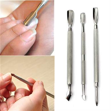 Перед тем как делать аппаратный маникюр, аккуратно отодвигаем кутикулу при помощи пушера или деревянной палочки (второй метод более деликатный).