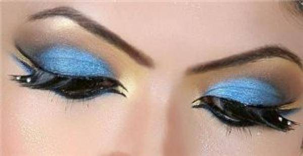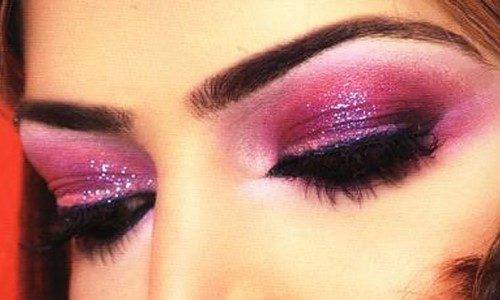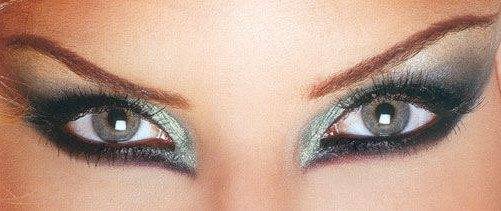 Первый шаг в подборе цветов, который зависит от цвета ваших глаз. Ранее писалось, какие цвета подойдут для конкретных оттенков глаз женщины. Но следует помнить, какой бы цвет не был выбран, обязательно сочетаться он должен с черным цветом. Что касается техники, то чаще всего используют перламутровые цвета, так как арабский образ подразумевает все яркое и блестящее.