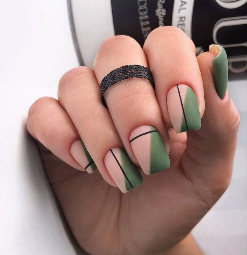 Маникюр с рисунком всегда выглядит стильно и привлекает внимание. Геометрия – удачная тематика для декора