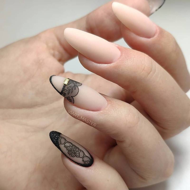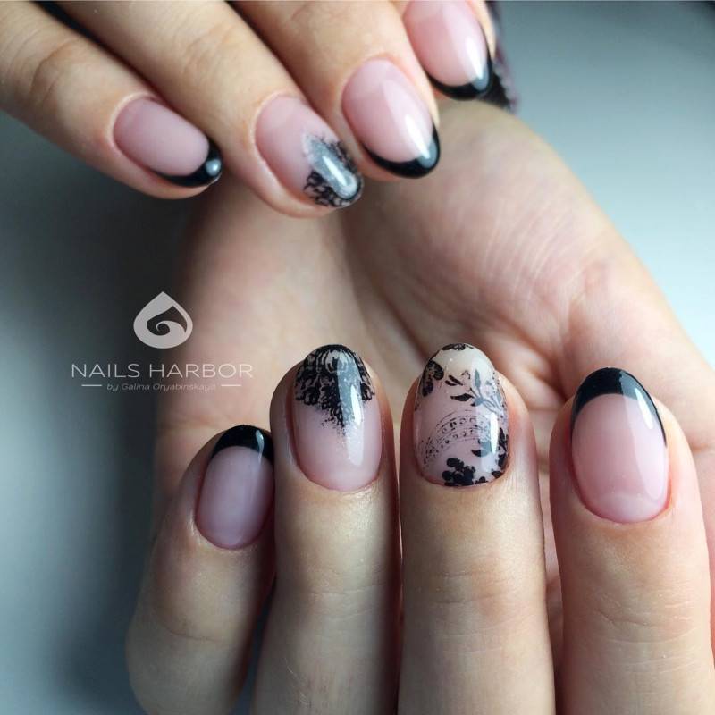 - Длинные ногти. Чтобы полюбившийся французский дизайн выглядел менее претенциозно, забудьте о стразах, остановив свой выбор на кружеве, игре цвета и текстур.