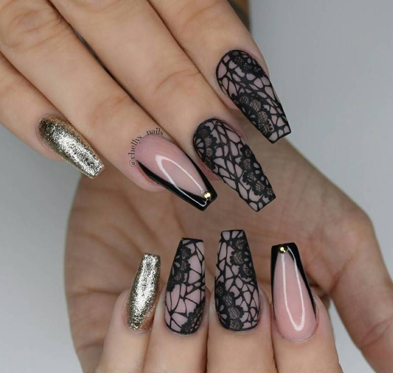 Романтично и особенно женственно выглядит рисунок в виде белого кружева. Этот вариант подойдет для свадебного торжества или на последний звонок в школе.
