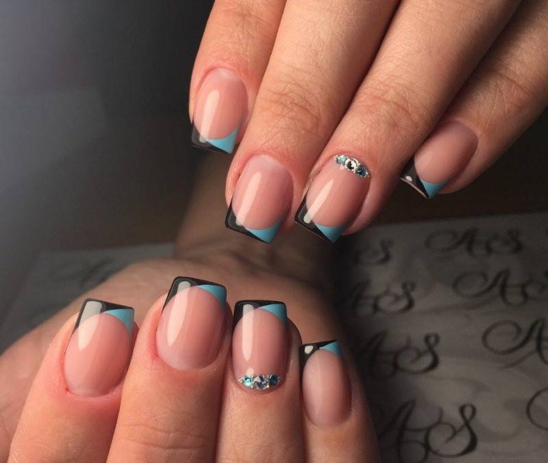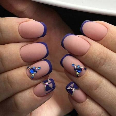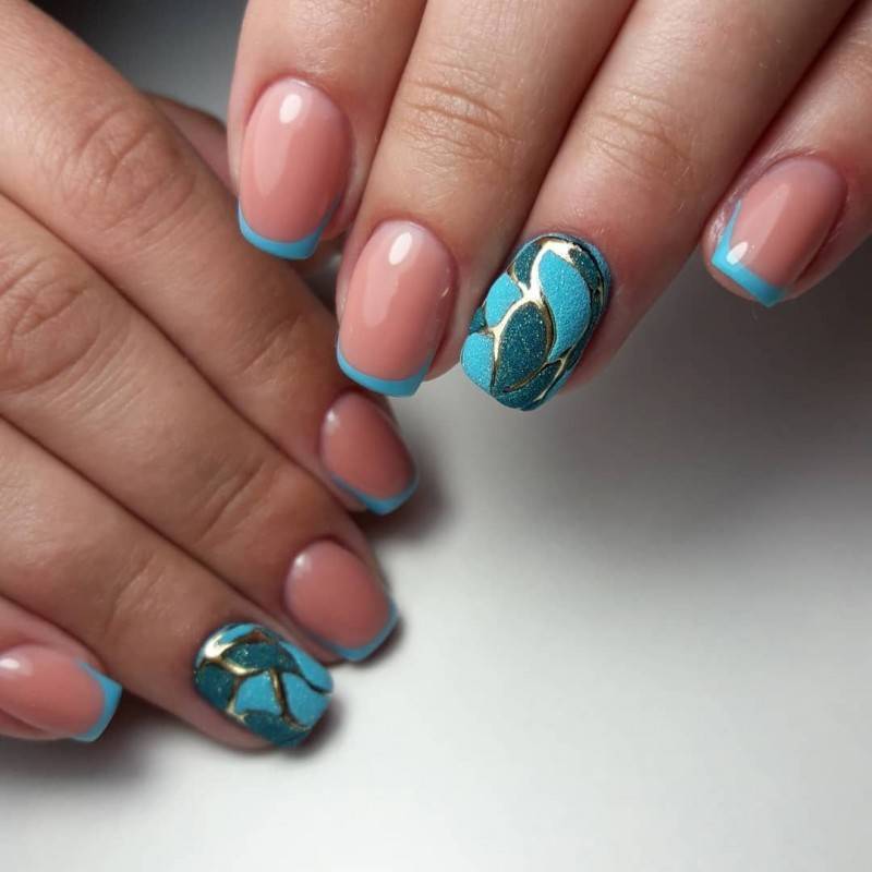 Синий цвет вызывает спокойствие и умиротворение, в французском маникюре этот цвет выглядит потрясающе. Синий френч также можно разбавить разными элементами дизайна в этом сезоне.
