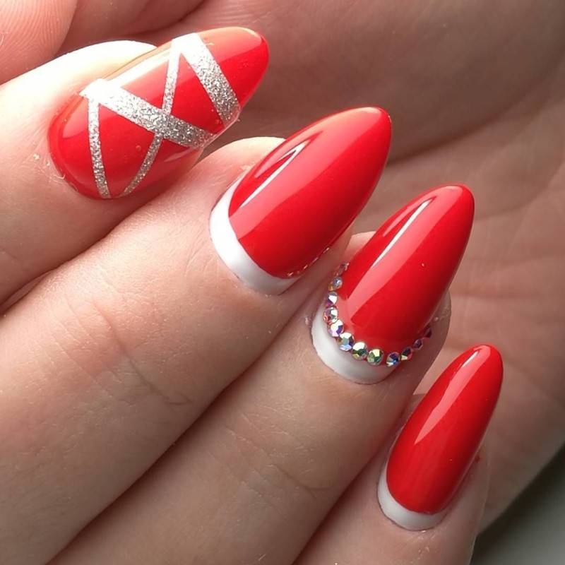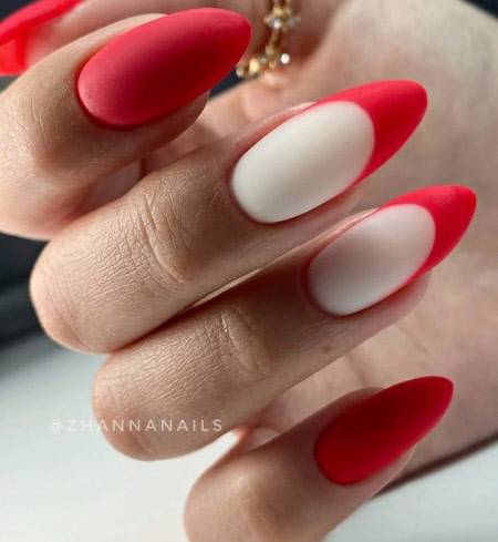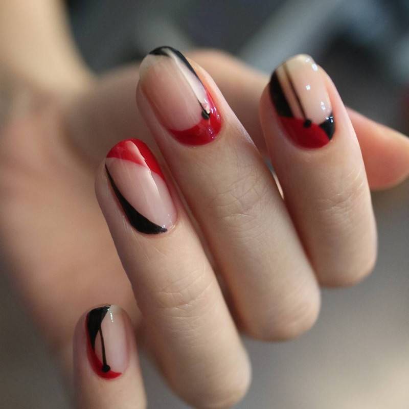 Если вы выбираете различные пастельные тона в качестве базового покрытия, выбирайте для кончиков смелые и яркие оттенки, например красный. Если вы хотите придать ему смелый и модный вид, покрасьте два или три ногтя полностью в красный цвет.
