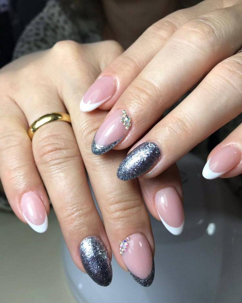 Что касается французского маникюра, то блестки в нем порой просто необходимы. Они освежают лаконичные однотонные нейл-арты, акцентируют прикорневую зону, помогают в создании дизайна омбре. В распоряжении девушек помимо простых сухих блесток еще множество другого декора, который по красоте не уступает стразам.