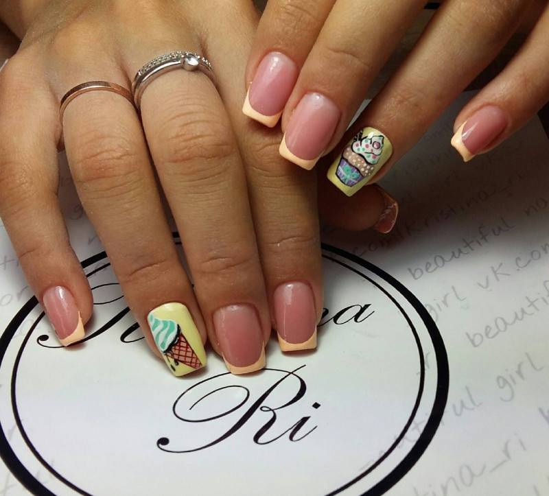 Цветной френч на ногтях с рисунком: какие оттенки использовать в дизайне