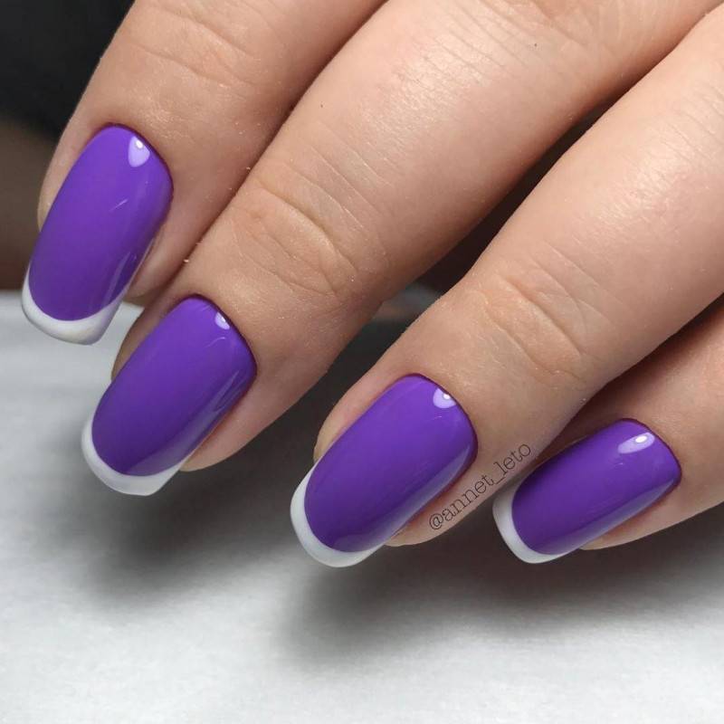 Но решение этой проблемы есть: модный цветной и нестандартный французский маникюр. Обладательницам особенно коротких ноготков стоит избегать чересчур контрастных цветовых сочетаний, выбирая для создания такого френча цвета из одной или близкой палитры оттенков, которые мягко между собой перекликаются и не создают резких переходов. Например, можно сочетать фиолетовый с сиреневым, голубой с синим и так далее.