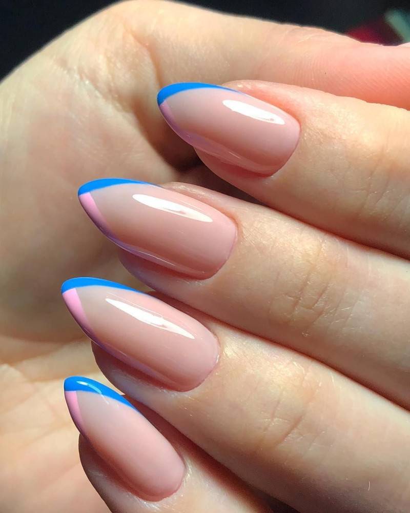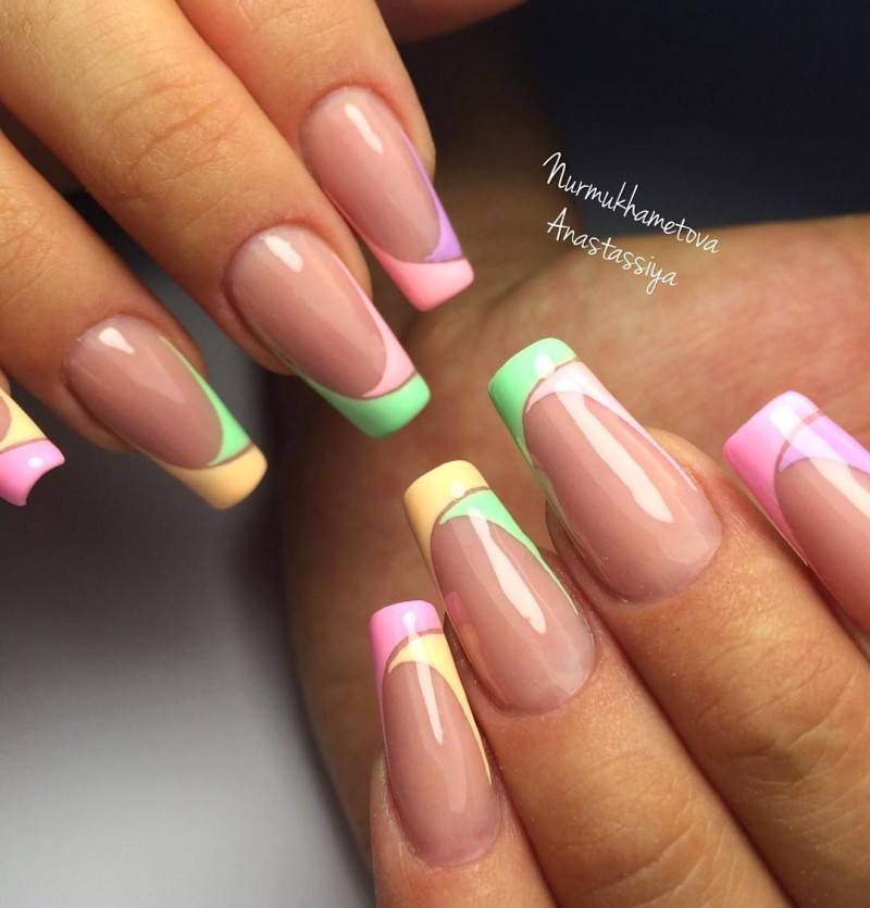 Вы можете использовать два или несколько разных цветов для создания разнообразного французского дизайна ногтей. Существует очень много возможностей комбинирования цветов для получения французского дизайна ногтей, поэтому вы можете использовать все, что вам нравится, в том числе технику омбре.