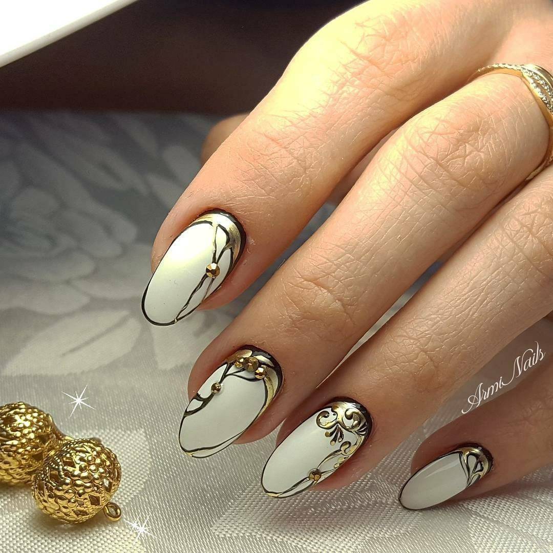 - Овальные ногти. На ногтях овальной формы хорошо выглядят арт-эксперименты с цветочными узорами, глиттером или втирками.