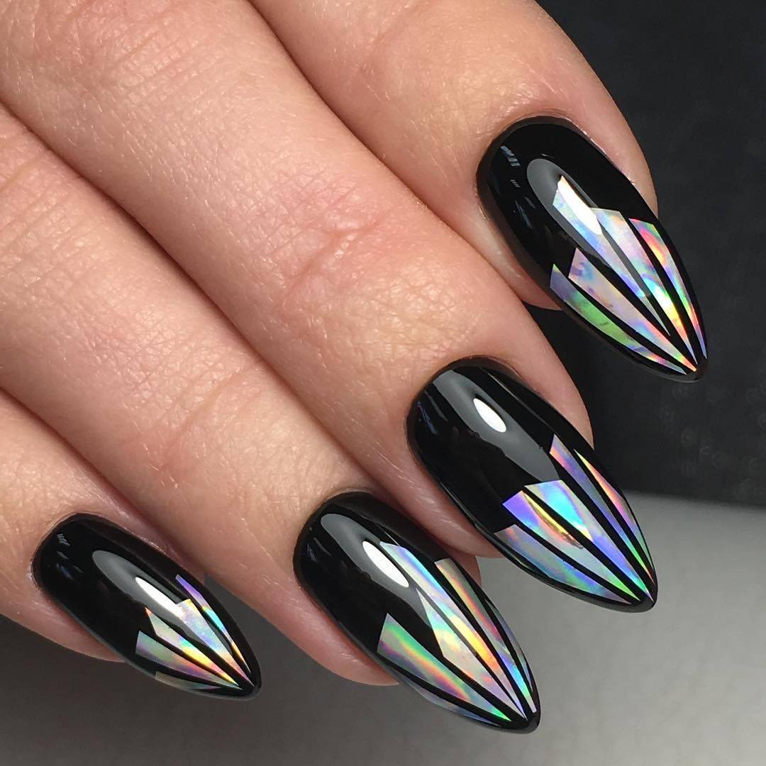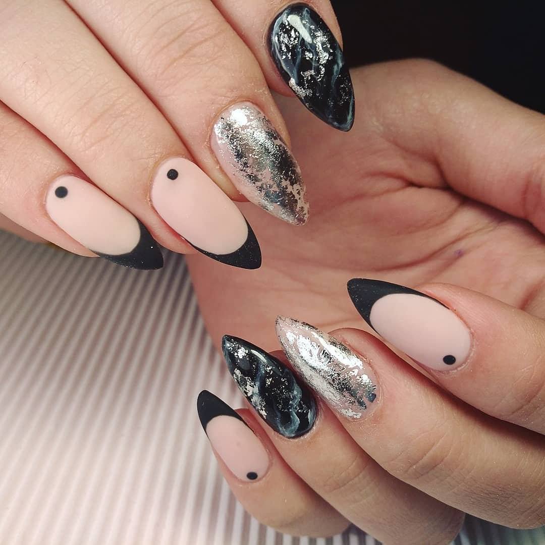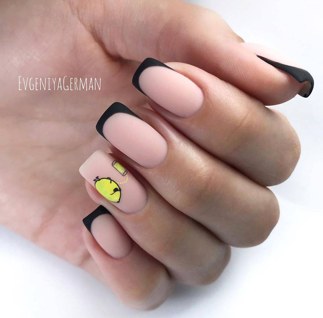 В 2022 году вместо белого используйте черный лак для ногтей, а точнее для кончиков французского маникюра. Вы также можете добавить к нему блестки, фольгу или дизайн, чтобы сделать его еще эффектнее. Выглядит такой маникюр просто потрясающие, взгляните на фото!
