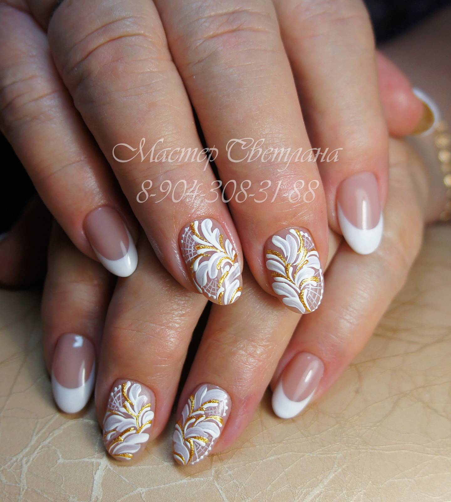 Романтично и особенно женственно выглядит рисунок в виде белого кружева. Этот вариант подойдет для свадебного торжества или на последний звонок в школе.