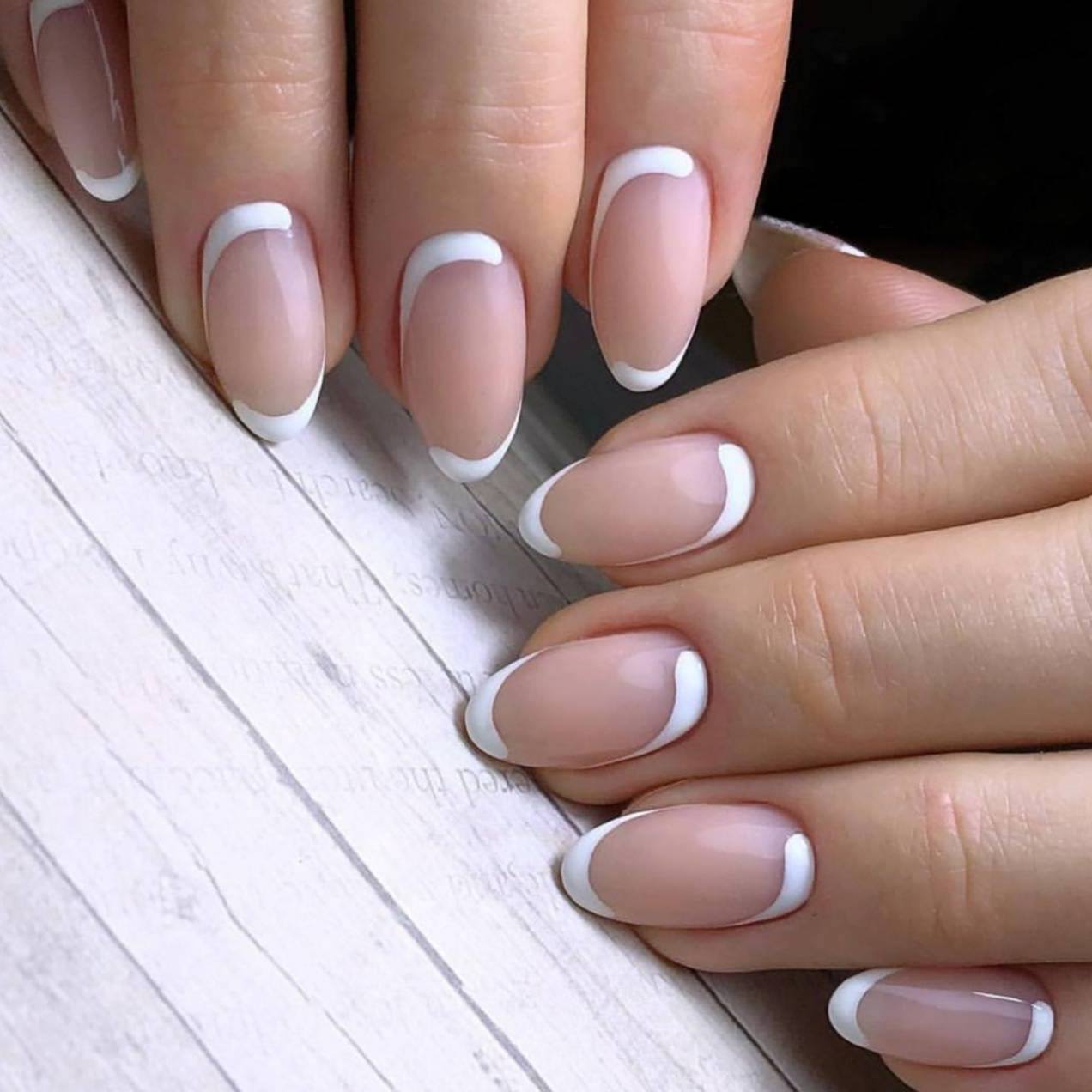 Важно: Для классического французского дизайна все линии делают плавными, округлыми, стараясь сгладить их даже при наличии квадратной формы ноготков.
