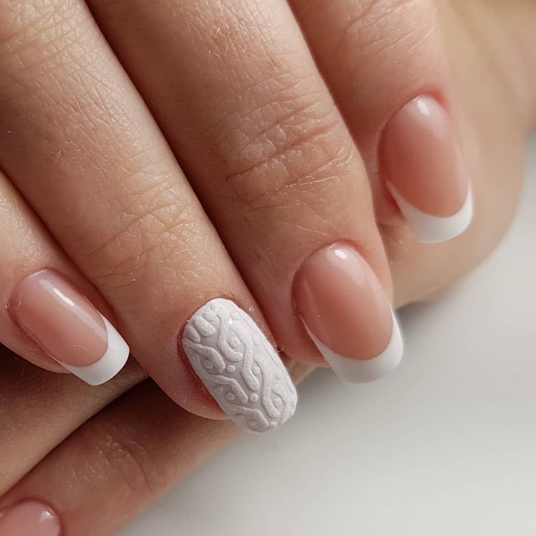 - Длинные ногти. Чтобы полюбившийся французский дизайн выглядел менее претенциозно, забудьте о стразах, остановив свой выбор на кружеве, игре цвета и текстур.