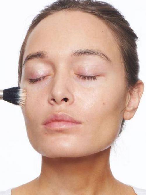 - Легкими вбивающими движениями нанесите минеральную пудру .