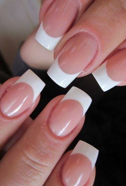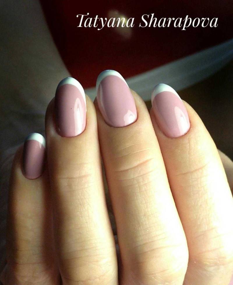 Вооружаемся лаками белого, а также розового или бежевого цветов. Понадобится и прозрачный финиш. Далее техники разнятся.