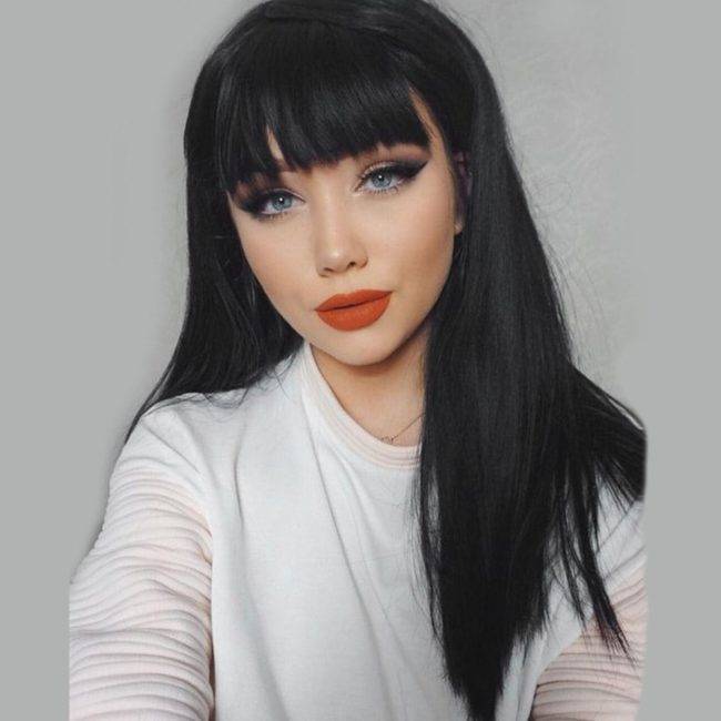 Ровная прямая челка, но не слишком густая, красиво ниспадающая по линии бровей или чуть ниже, будет одной из самых востребованных в 2021 году. Лучше всего такая челка подходит для прямых волос, вне зависимости от того, будет ли это боб или просто длинные волосы с ровной стрижкой или каскадом. Прямая челка придает образу таинственности и романтичности, многие звезды в этом сезоне отдают предпочтение прямой челке.