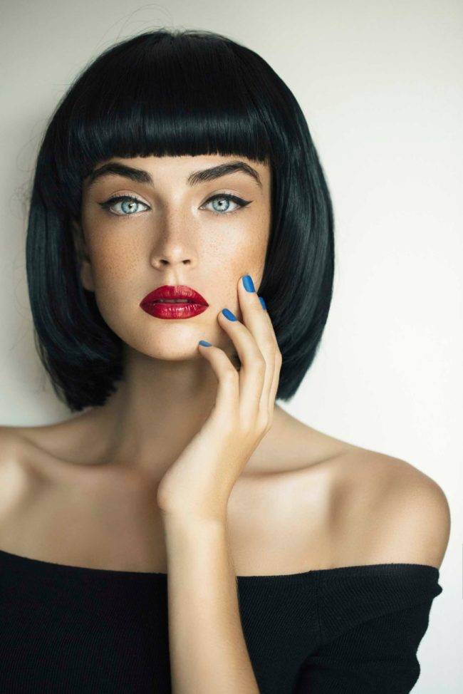 Челка с рваными краями идеальна в уходе, подходит для всех возрастов. Небрежность всегда в моде, а легкость в уходе добавляет популярности. Ровный диагональный срез строг и графичен, но подойдет не всякому лицу, так как делает образ скучным.