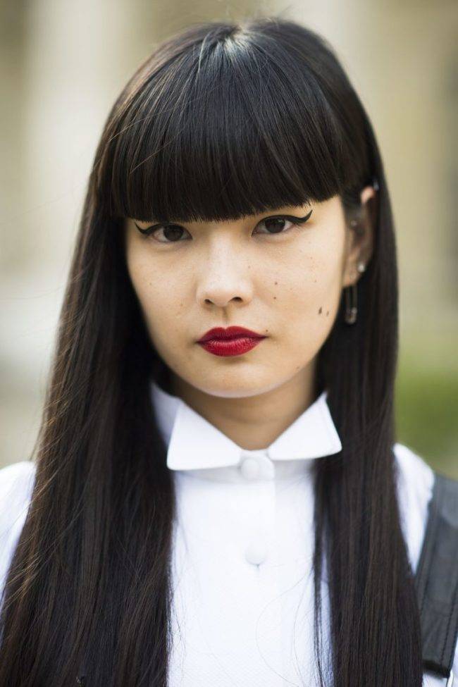 Такая, несколько экстремального вида челка идеально подойдет обладательницам густых темных волос прямого типа. А вот кудрявым девушкам лучше отказаться от ношения такой челки, так как систематическое ее выпрямление скажется на состоянии волос далеко не самым лучшим образом. После того, как челка выстрижена, ее необходимо уложить, придав при этом необходимую форму.