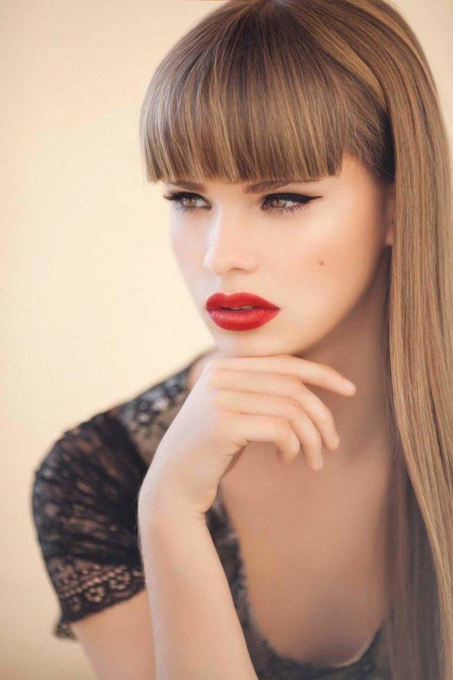 - прямая – это густая челка в ее самом классическом понимании, в которой все волоски одинаковой длины;