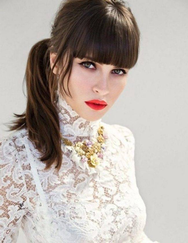 Сама по себе прическа с такой челкой всегда будет смотреться стильно и максимально женственно, какой бы вариант моделирования вы не выбрали, экспериментируя с множеством вариантов укладки и примеряя различные образы.