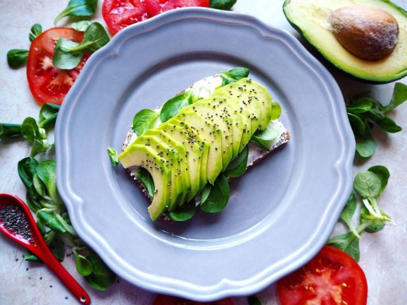 - Завтрак: бутерброд из хлеба и авокадной пасты.