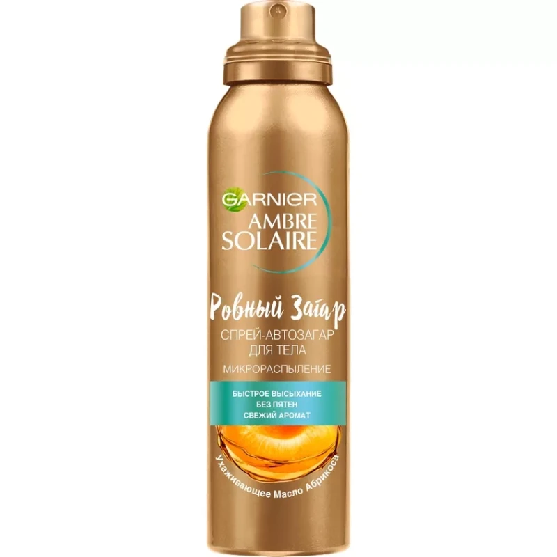 Сухой спрей автобронзатор от французского бренда Гарньер гарантирует деликатное микрораспыление, быстрое высыхание, естественную коррекцию тона без пятен и желтизны. После себя оставляет вкусный абрикосовый аромат.