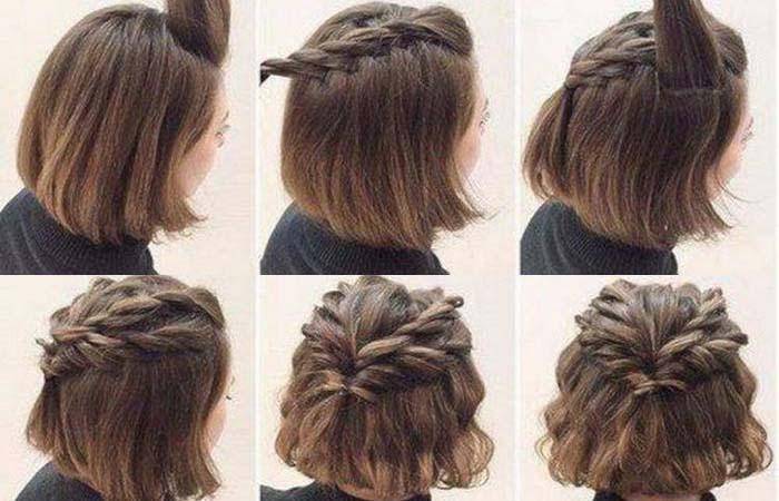 Предварительно расчесанные волосы поделить при помощи бокового пробора. С одной стороны создавать косу по французской техники плетения. При этом вовлекать в процесс волосы с двух сторон. Когда достигнете мочки уха, то закрепить косу резинкой. Волосы, расположенные с другой стороны, скрутить в жгут. Соединить полученные элементы и создать рыбий хвост. Плетение потянуть руками и все закрепить лаком. А вот как делаются две косички на короткие волосы и как это сделать самостоятельно, рассказывается в данной статье.