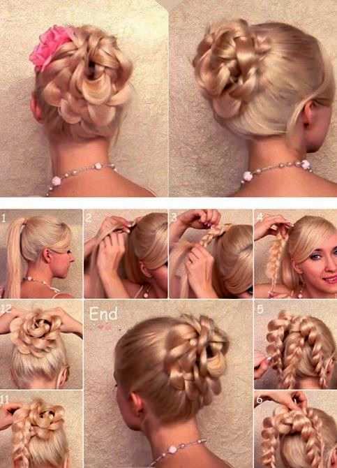 Популярный способ украшения любой прически. Можно воплотить в жизнь даже на коротких волосах, но цветы получатся не слишком большие. А длинноволосые красотки смогут сделать на голове целую оранжерею.