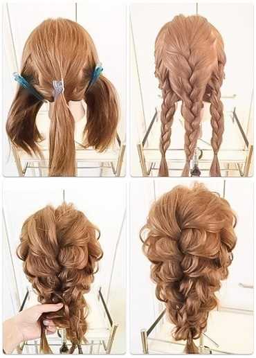 Таким же образом делают и две косички, предварительно распределив волосы на две части.