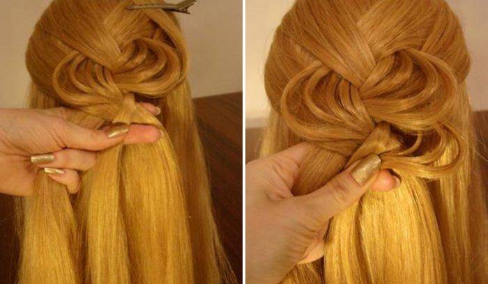 Из тонких прядей получаются утонченные лепестки, если брать крупные локоны, то можно выполнить ажур более объемный.
