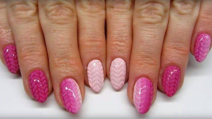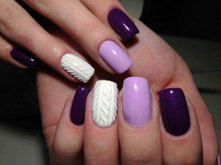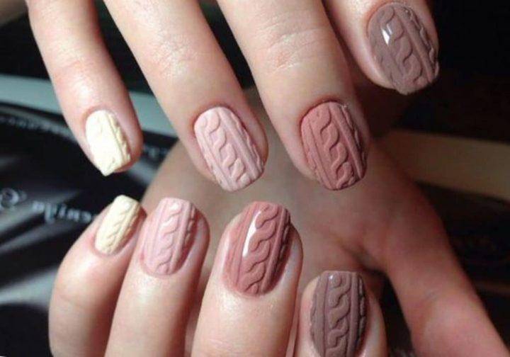 В осенне-зимний период особенной популярностью пользуется так называемый «вязаный» маникюр. Его отличительной особенностью является наличие узоров, по своему строению напоминающих вязаный свитер.