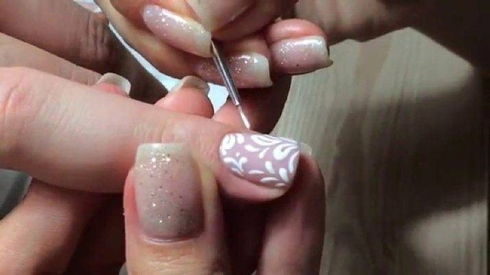 - Прозрачным гелем нарисуйте причудливые завитки или выбранный рисунок.